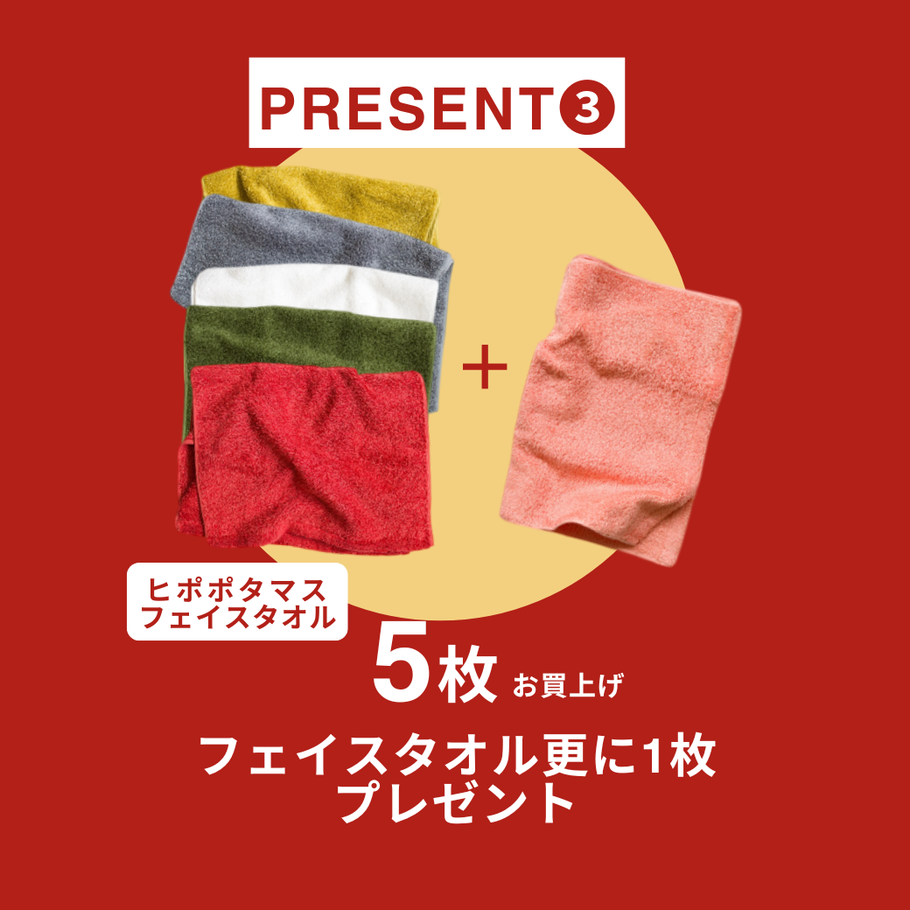 現在アニバーサリーフェアにてフェイスタオルを5点購入で、1点プレゼントの特典付きとなっているため、ご自宅用と贈り物に選んで5点購入される方が多数でした。