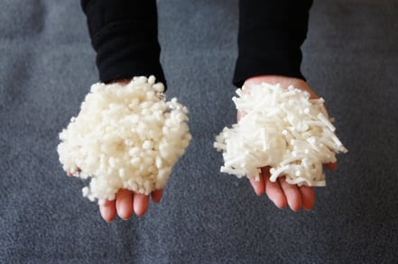 ラテックスチップが絡みやすくなるようポリエステルわたを加えています。
