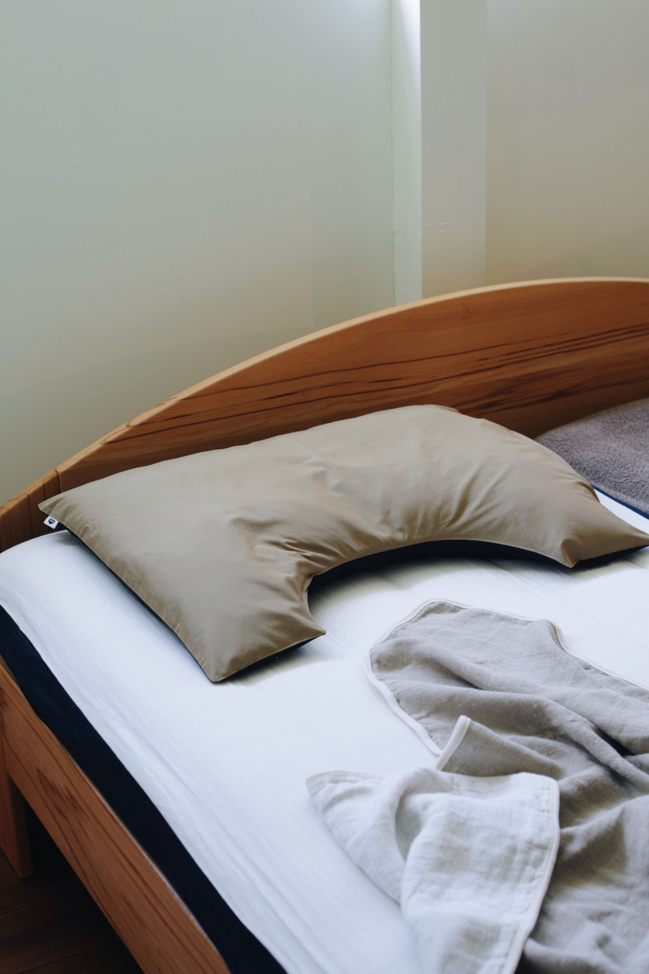 ハンドメイドで作られたU字型枕は、仰向け時肩添いが良く、頭から首まで包み込み心地よい寝心地を実現します。 抱き枕のようにしっかりと抱えながら眠ることで、腕の重さを分解させ、肩や腕にかかる負担を軽減します。 中わたの量を調整することで、自分の身体に合う枕の高さに調節することができます。
