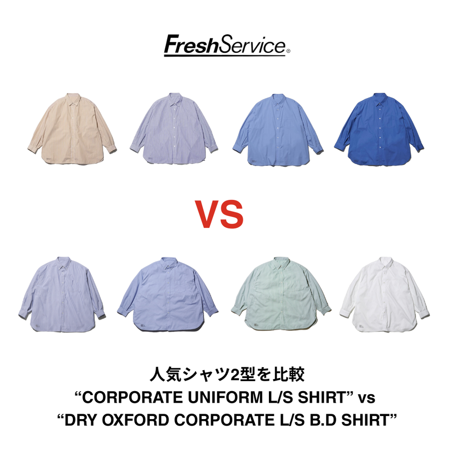 中でも〈CORPORATE UNIFORM L/S SHIRT〉と〈DRY OXFORD CORPORATE L/S B.D SHIRT〉は、迷われる方が多い2モデルです。