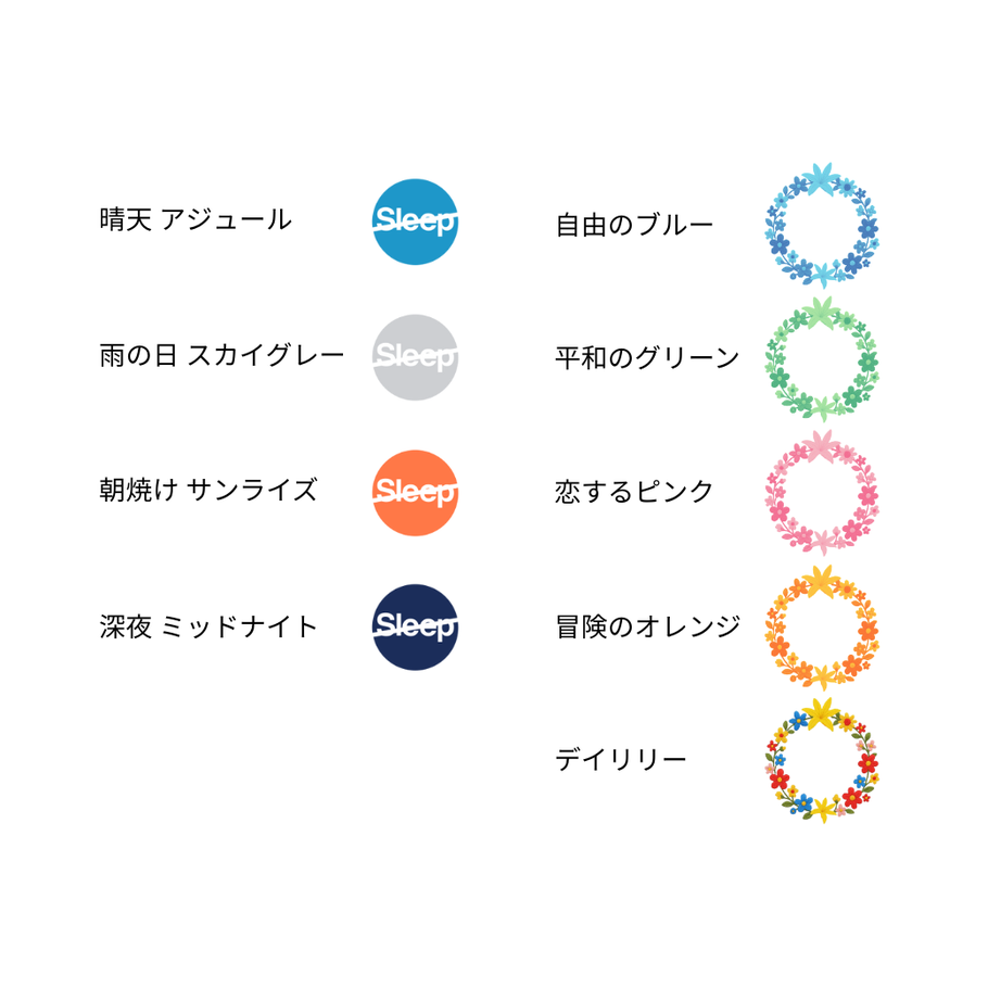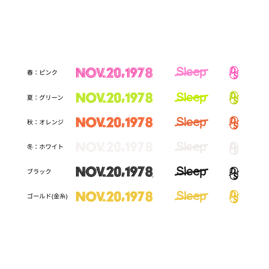 この6色は、他にもSleep slashロゴ刺繍や、イニシャル刺繍にもお選びいただけます。