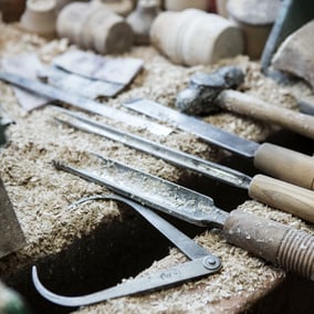 そして数年をかけ寝かせ、反りや縮みを落ち着かせた後に、ようやく加工にとりかかる。