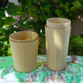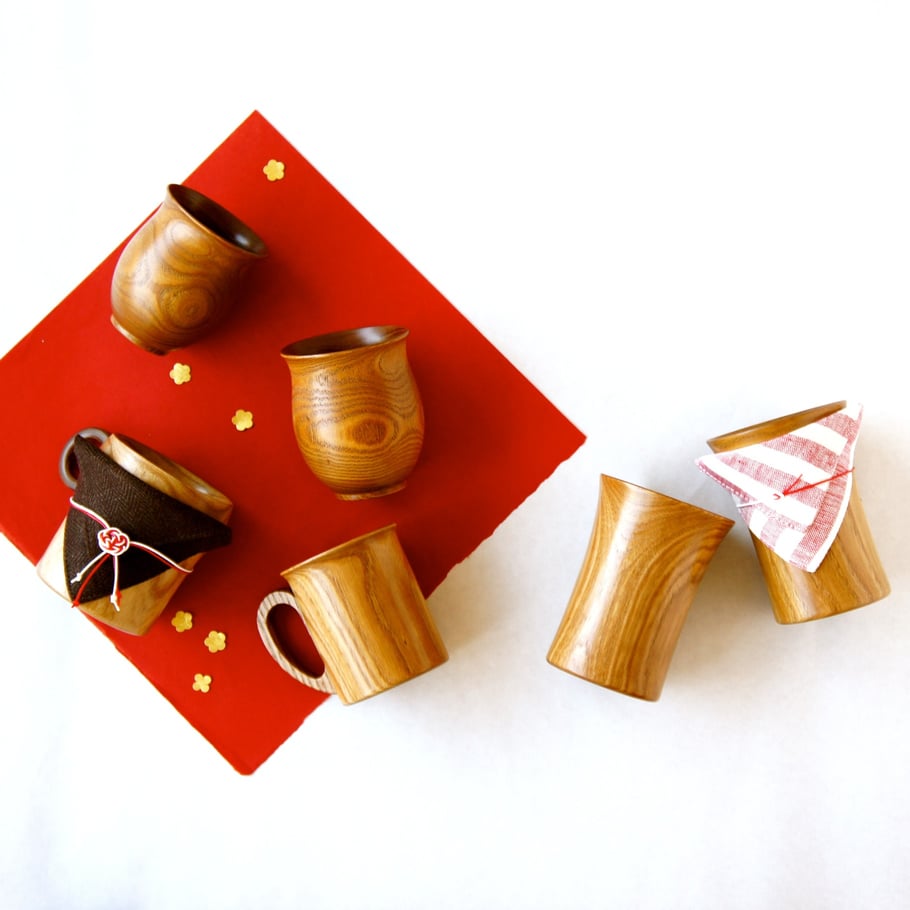 北海道産の「セン」の木を、ロクロでひいてつくった”木の飲み物の器”を主としたシリーズです。