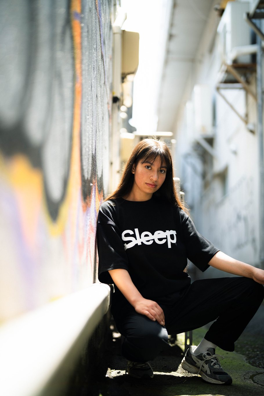 リリーズのたびに即完する人気商品、定番のSleep slash ロゴをプリントした、9.1オンスのヘビーオンスTシャツ。