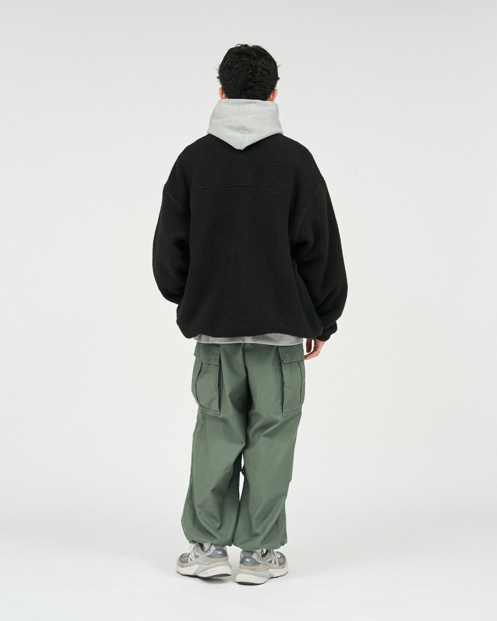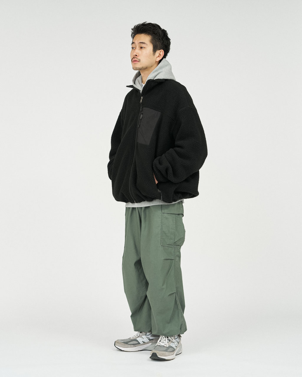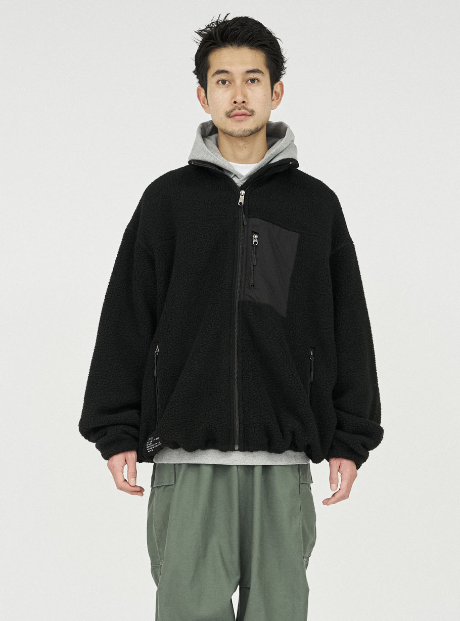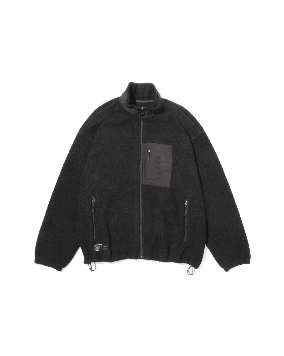 90年代のアウトドアウェアを思わせる、スタンドカラーのボアフリースジャケット。