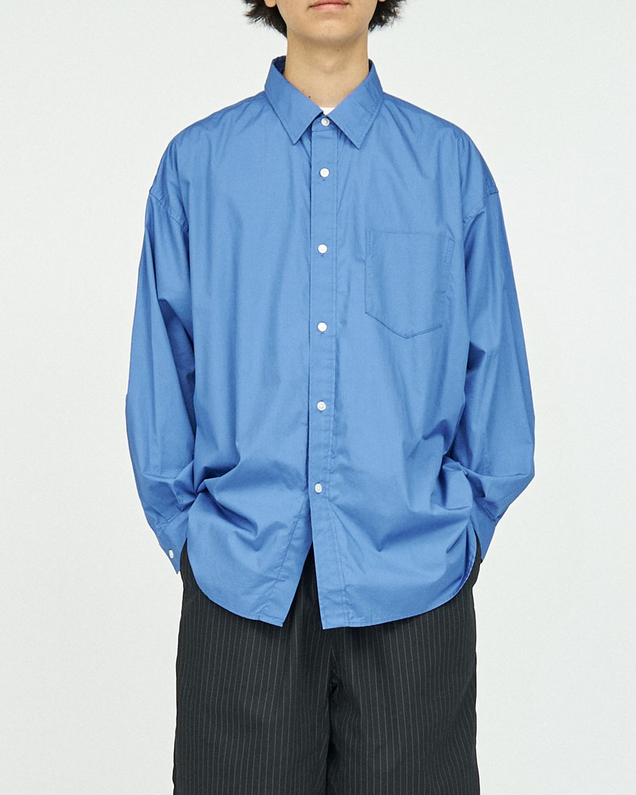 シャツ一枚でも、上からスウェットやアウターを重ねても形がきれいに出ます。