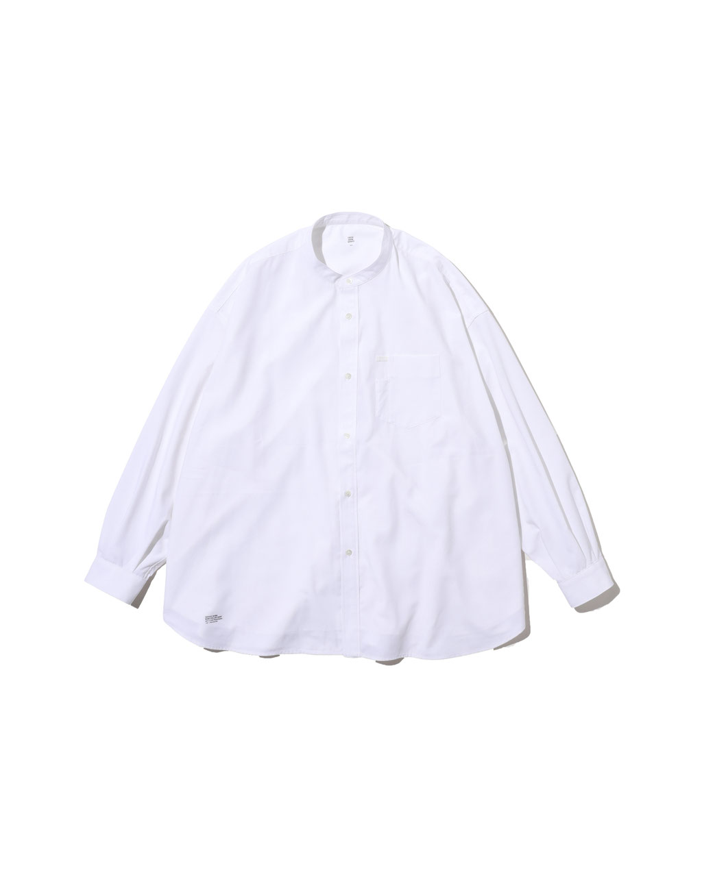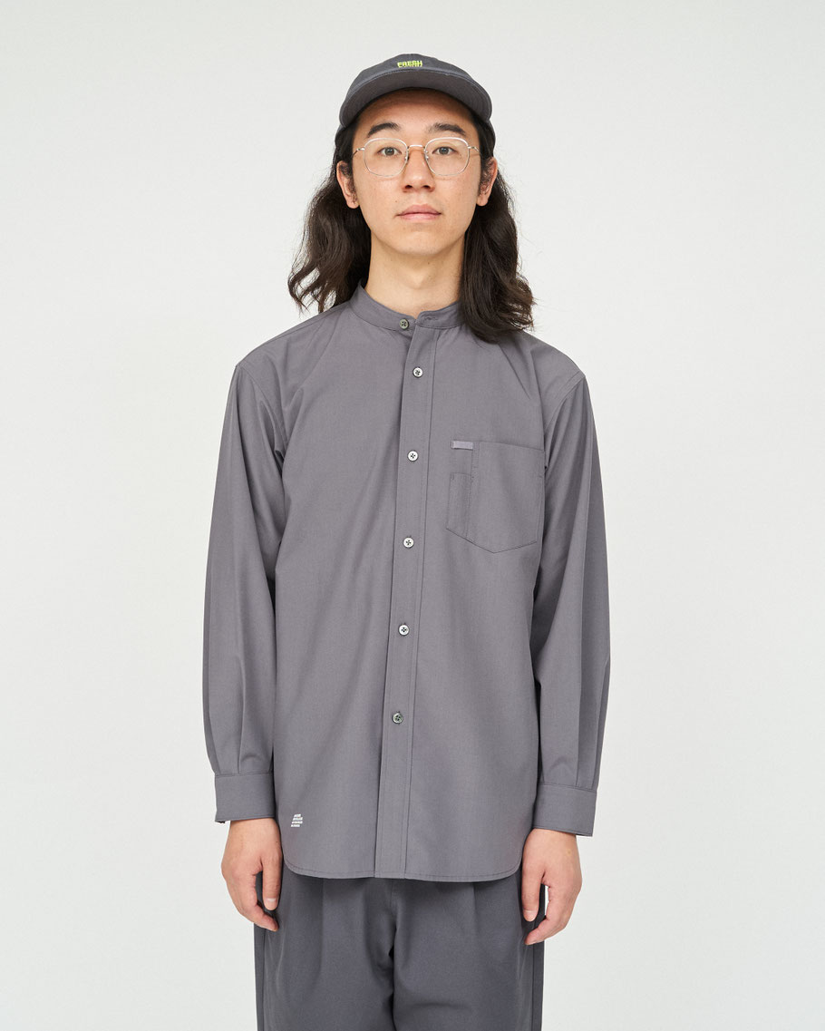 従来のシャツのサイズよりもコンパクトになったバンドカラーのワークシャツ。
