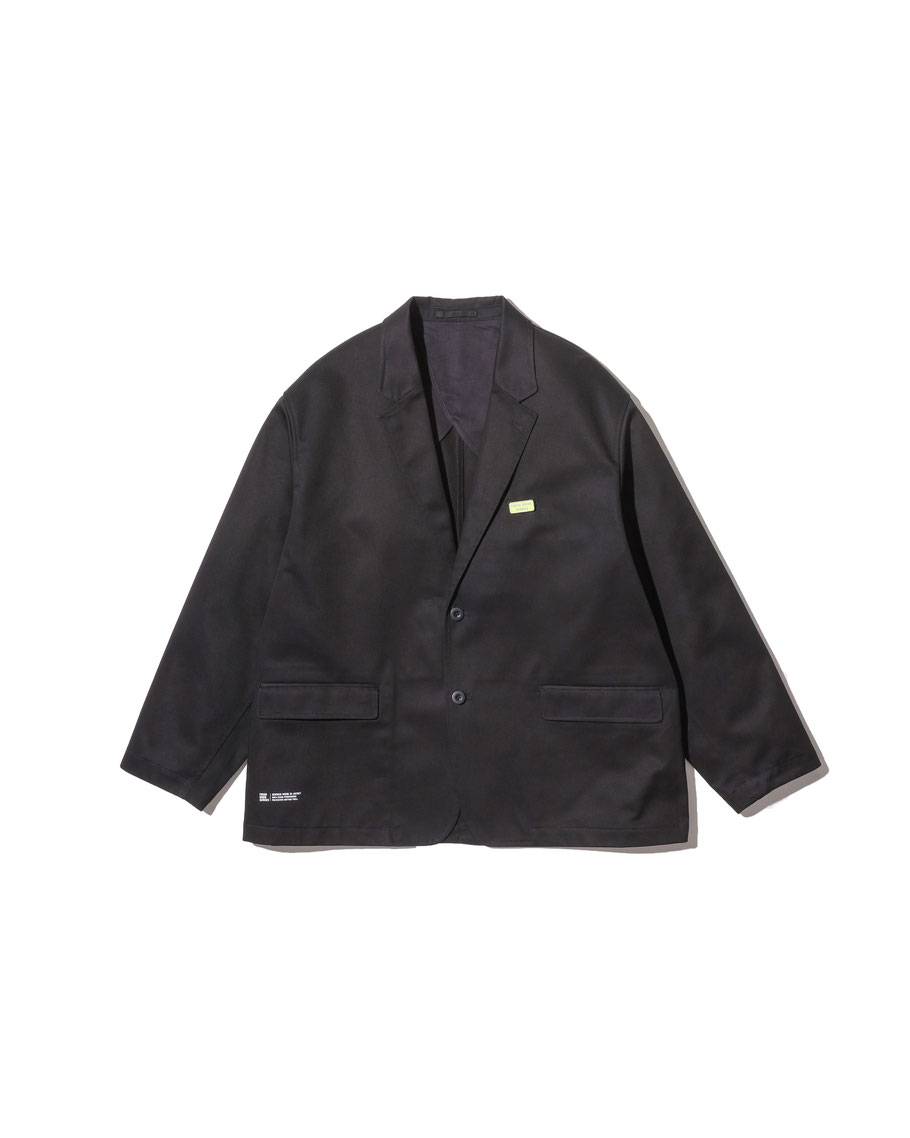 ジャケット同様に ポリエステル × コットンの混紡素材 を用いたチノパンツ。
