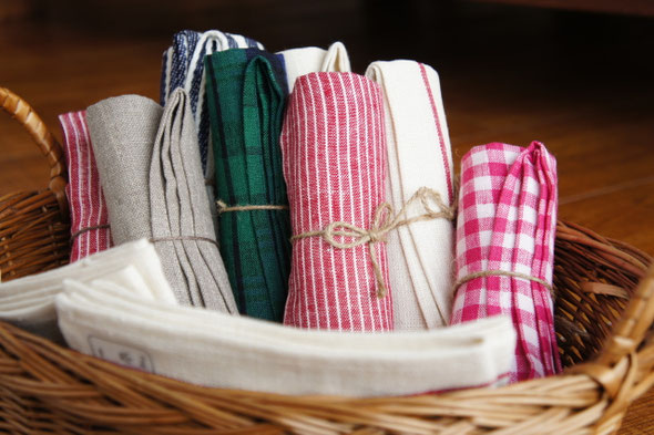 カラーが約35種類あり、ゲストの好みに合わせて選ぶことも出来るキッチンクロス。