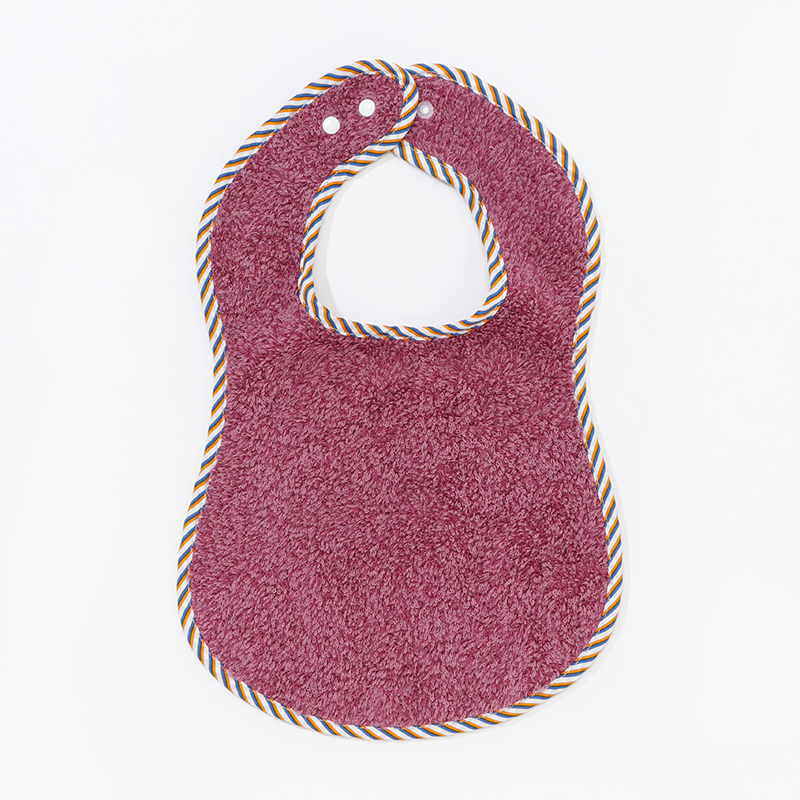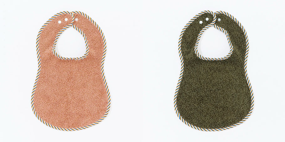 素材:タオル生地/有機栽培綿 63% + 再生竹繊維 37%、パイピング部分/コットン 100%、ネーム/ポリエステル 88% + 水系ポリウレタン 12%、スナップ/樹脂