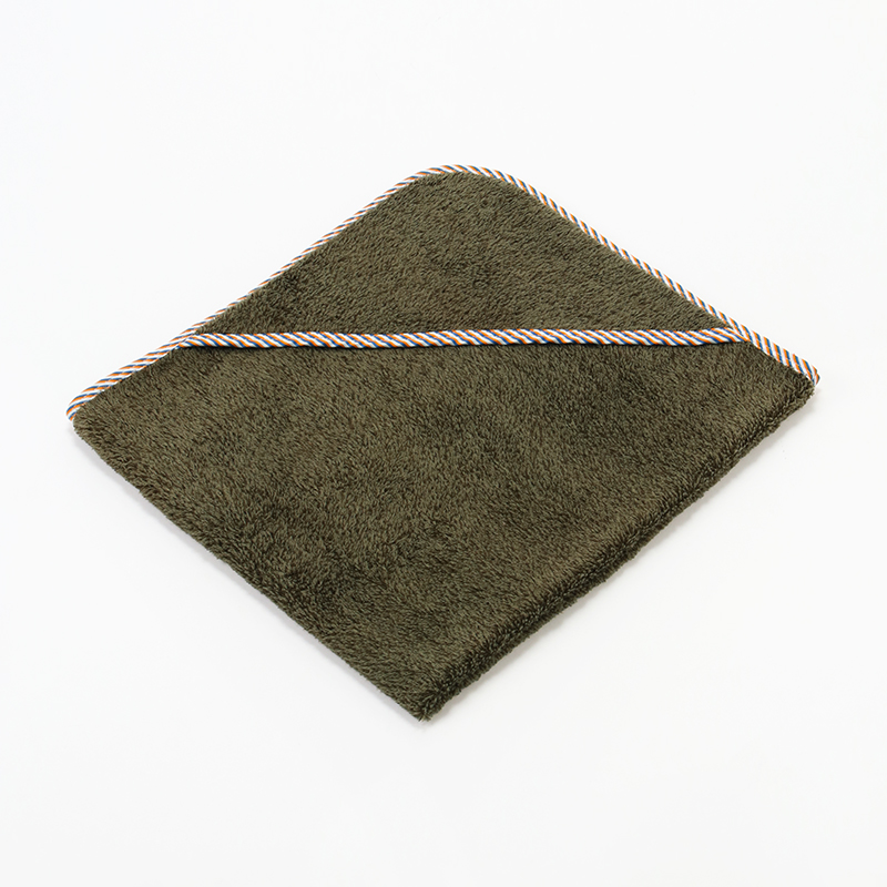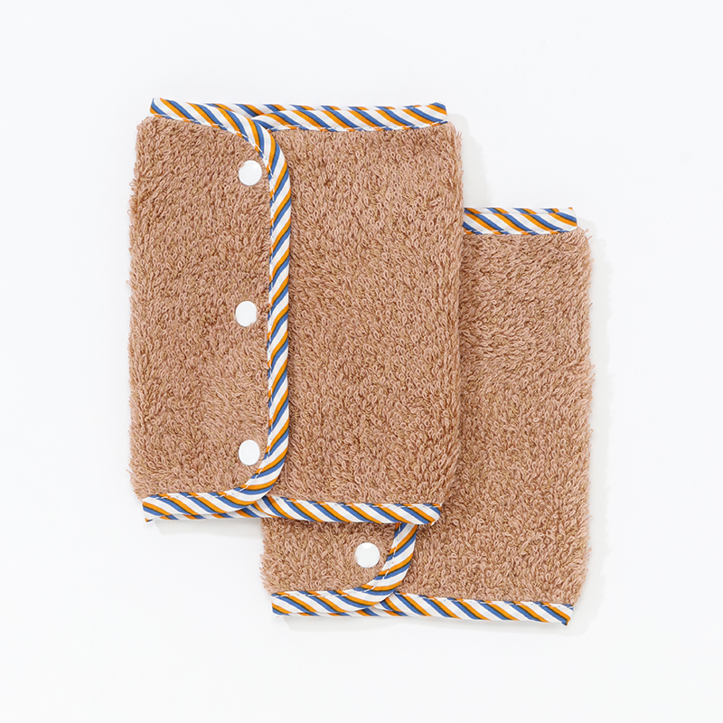素材:タオル生地/有機栽培綿 63% + 再生竹繊維 37%、パイピング部分/コットン 100%、ネーム/ポリエステル 88% + 水系ポリウレタン 12%