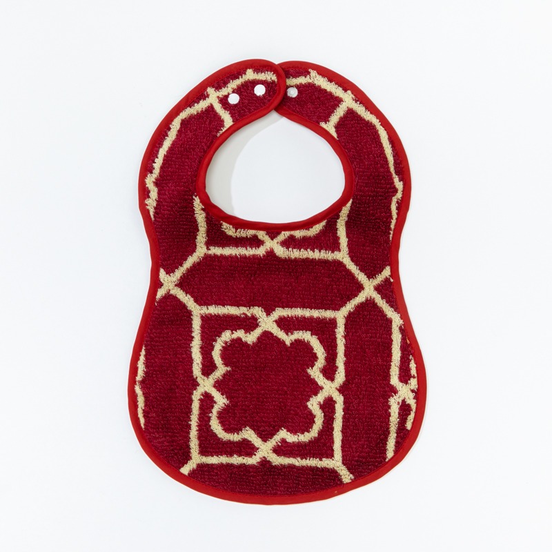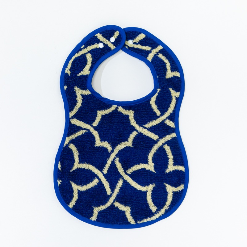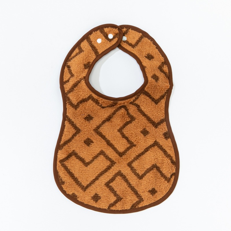 オーガニックコットンとバンブーレーヨン(再生竹繊維)を交織したヒポポタマス定番のタオル生地を使用し、優れた吸水性を継承しつつ、子供っぽく見せない上品な柄になったベビーアイテムとなっています。