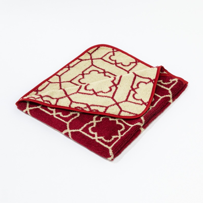 遊牧民族の敷物が起源であるといわれるペルシャ絨毯は、長い歴史のなかで織り継がれ、その奥深さは目をみはります。星と花が繰り返される幾何学模様に、ペルシャ文化への想いを込めました。パープルとベージュの組み合わせが高級感にあふれ、リッチな仕上がりです。