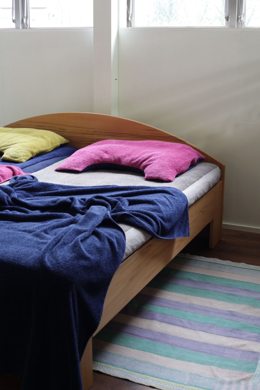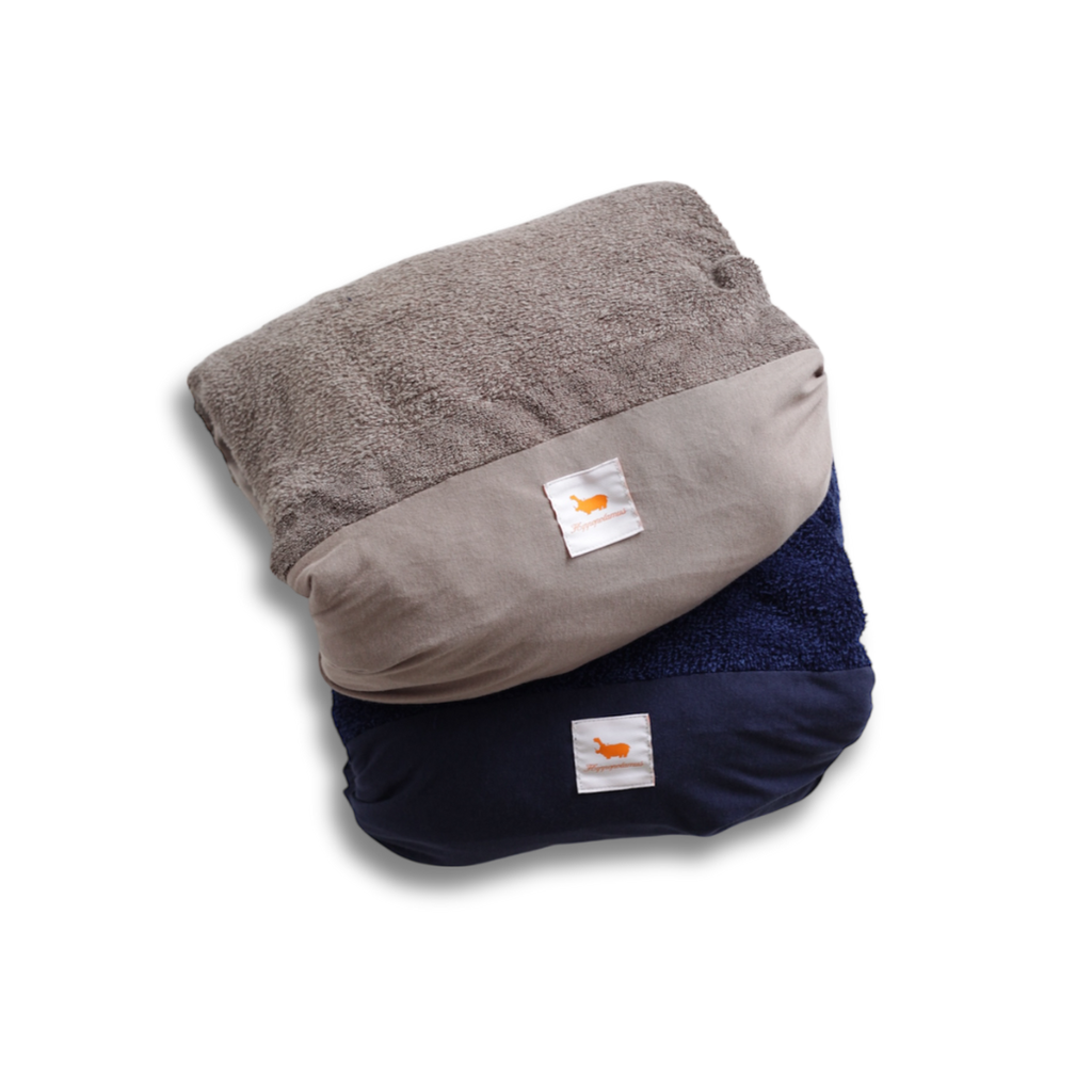 寝る面はタオルケット生地そのままに、側面を同色のコットンレーヨン生地へ変更。