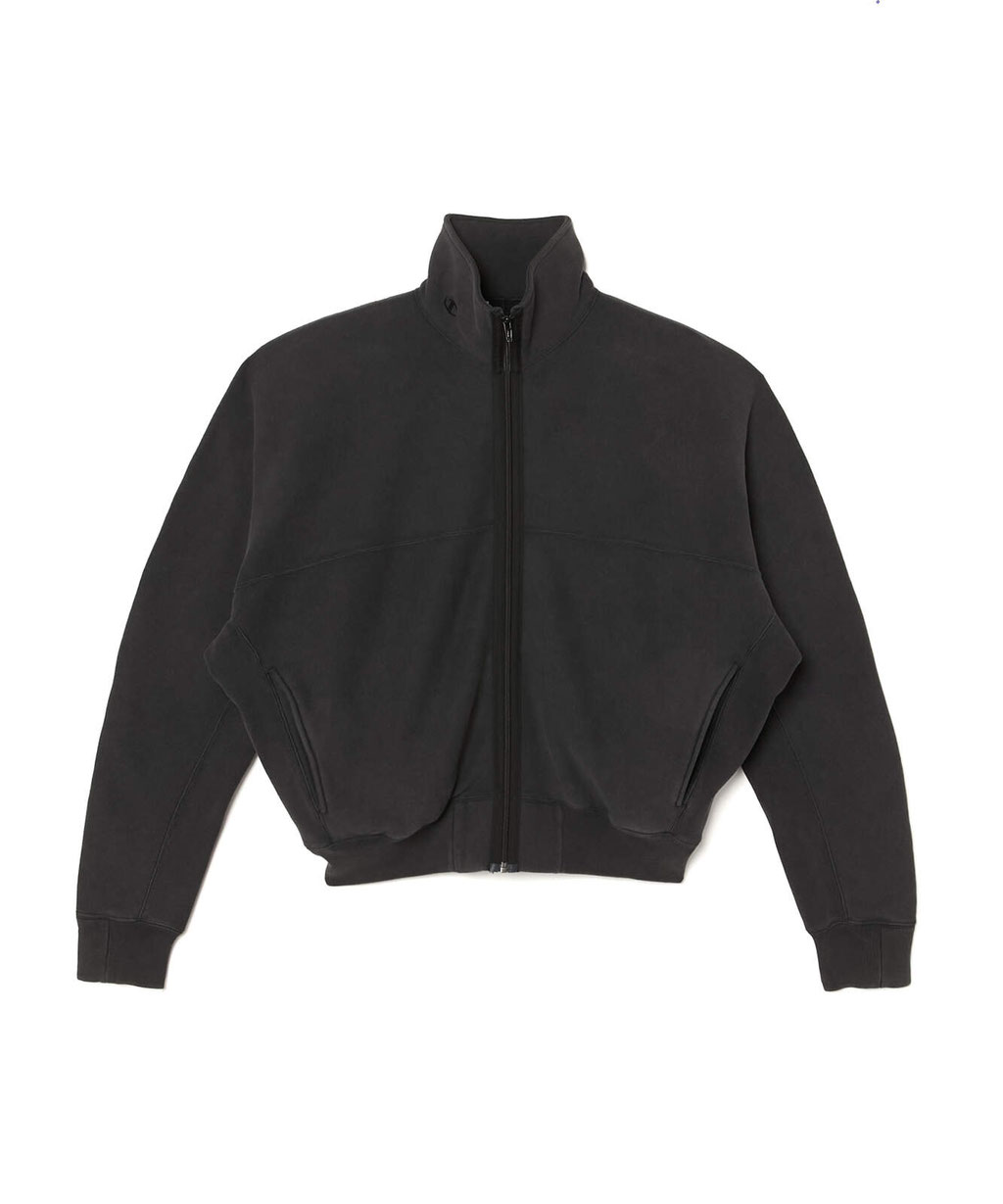 ハイネックとジップのバランスが美しく、立ち上がる襟が冬の首元を暖かく守ります。