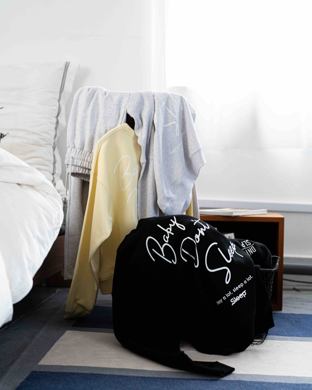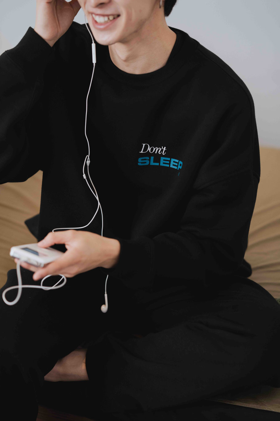 刺繍の「DON'T」ロゴとプリントの「SLEEP」ロゴのコントラストもいい感じ。