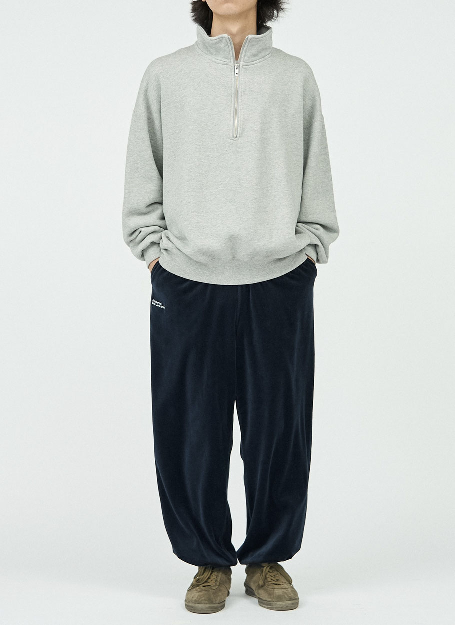 ハーフジップが首元をすっきり見せ、大人のスポーティさに。