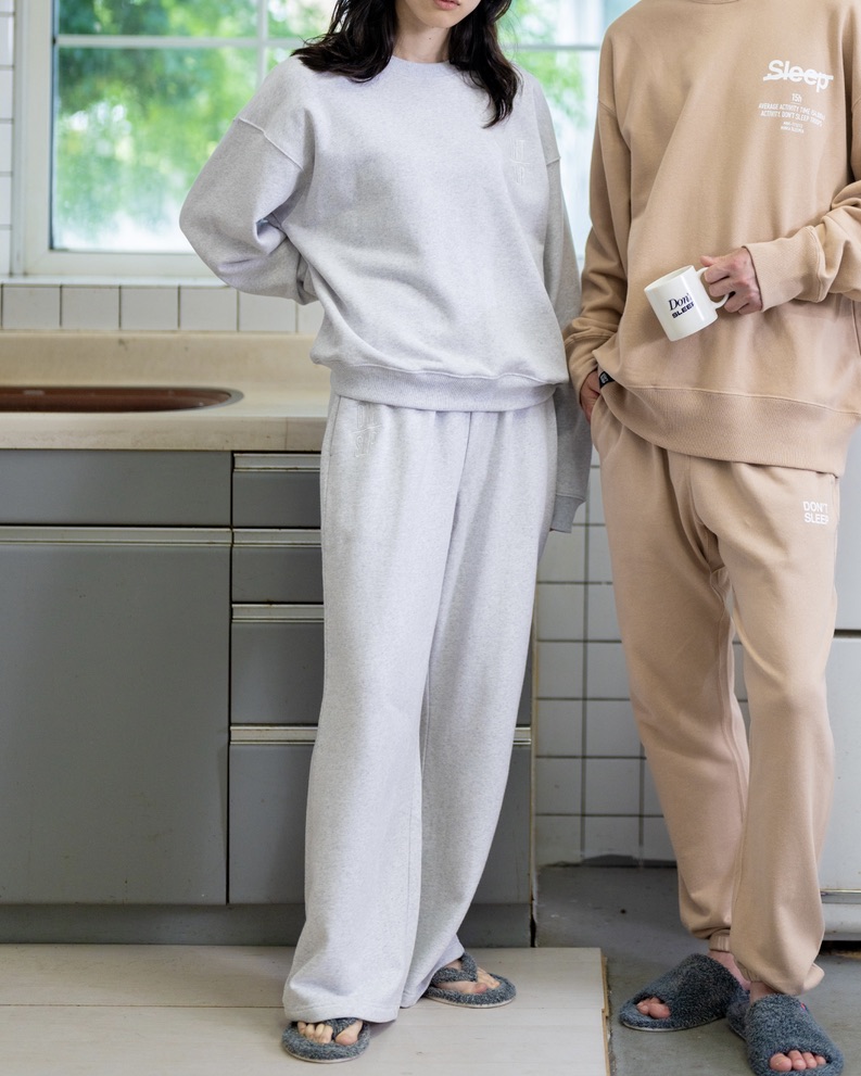 パンツは裾が綺麗に落ちて、スウェットでもカジュアルになりすぎないワイドシルエット。