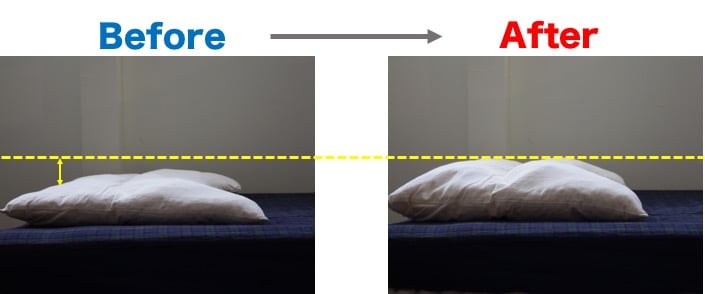 可能であれば毎日少しでもいいので手で中わたをほぐしてあげると、購入時の弾力や柔らかさを長く持続させることができます。