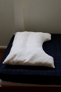 調整前は首や頭がくる位置の中わたの量が多く高さがあったため、その範囲の量を減らして枕の高さを低くしました。