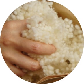 比較的ウールわたの方がほぐした時の復活力が強いので、ラテックスわたよりも買い替えまで長いスパンでお楽しみいただけます。