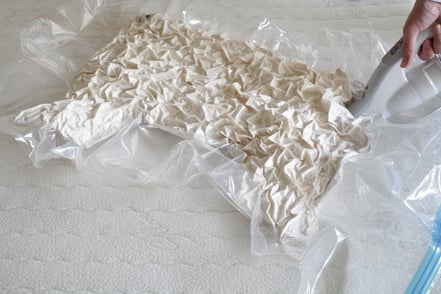 スプレーをして湿ったままの枕をふとん圧縮袋に入れます。