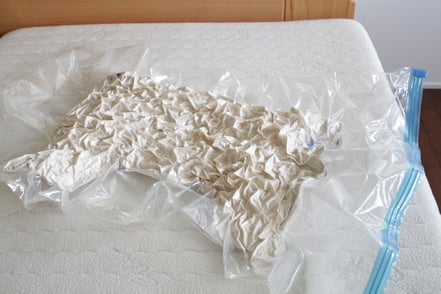 圧縮袋から枕を取り出し、枕を風通しの良いところで乾燥させます。