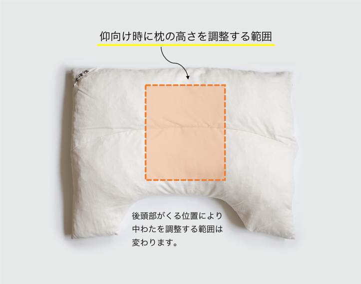 身長や頭部の形によって個人差はありますが、この範囲の中わたを調節して仰向け時の姿勢を作ります。