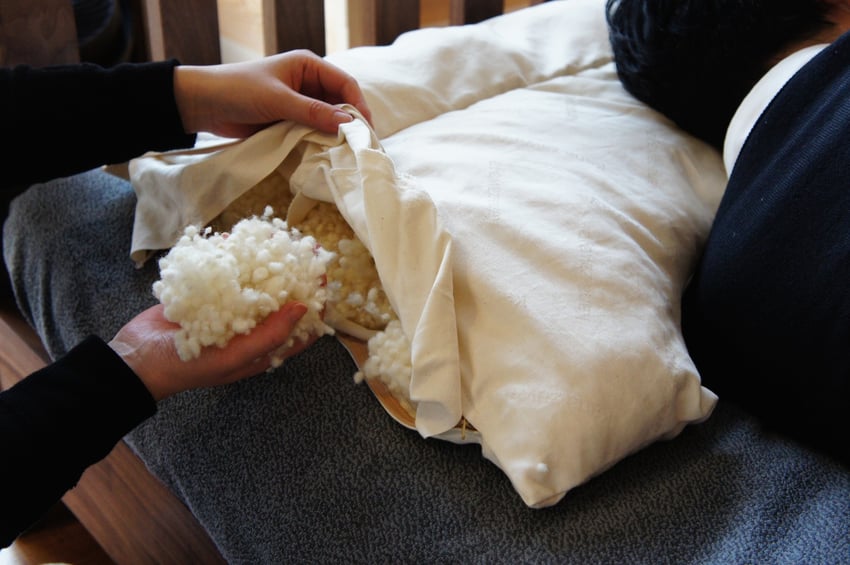 どちらの中わたも定期的に手でほぐすことにより、枕のへたれを回復させることが出来ます。