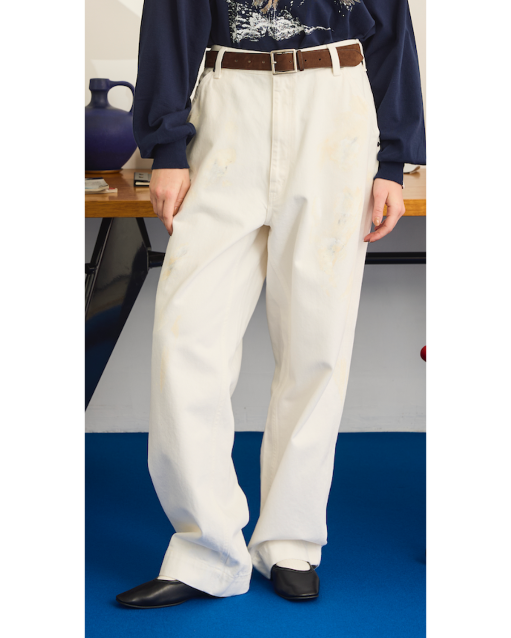 腰まわりは程よくフィットし、裾までまっすぐに落ちるシルエット。
