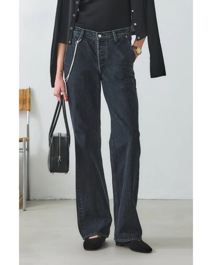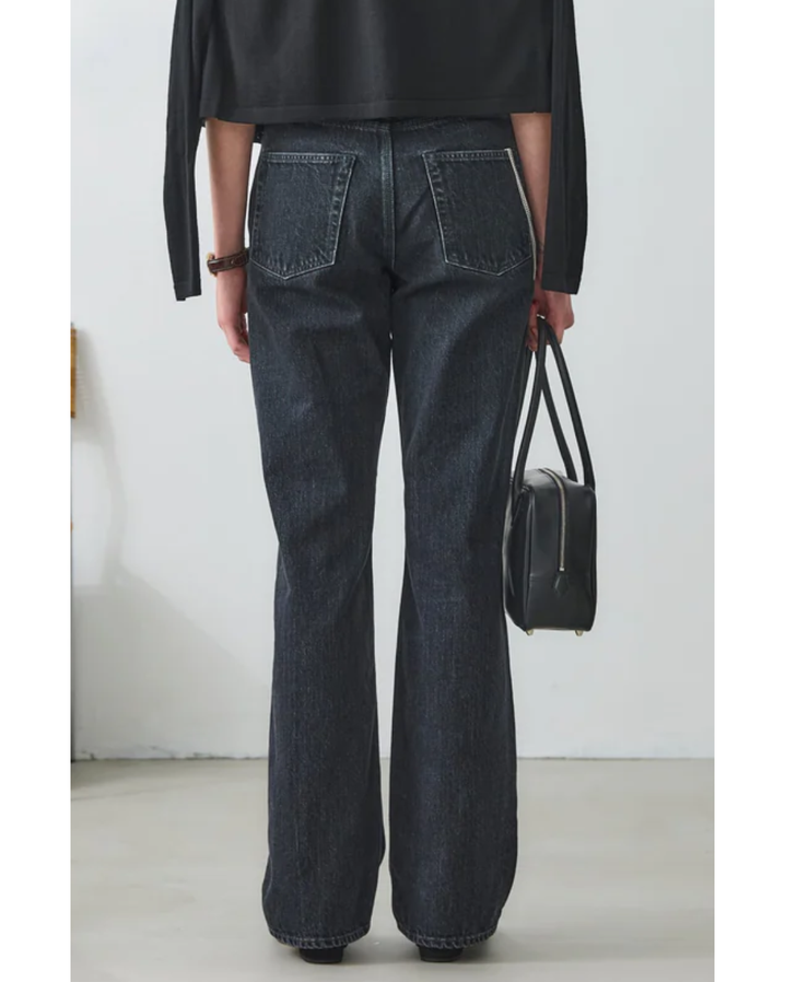 浅めの前股上としっかりと包み込む後ろ股上で、上品なムードのフレアデニム。