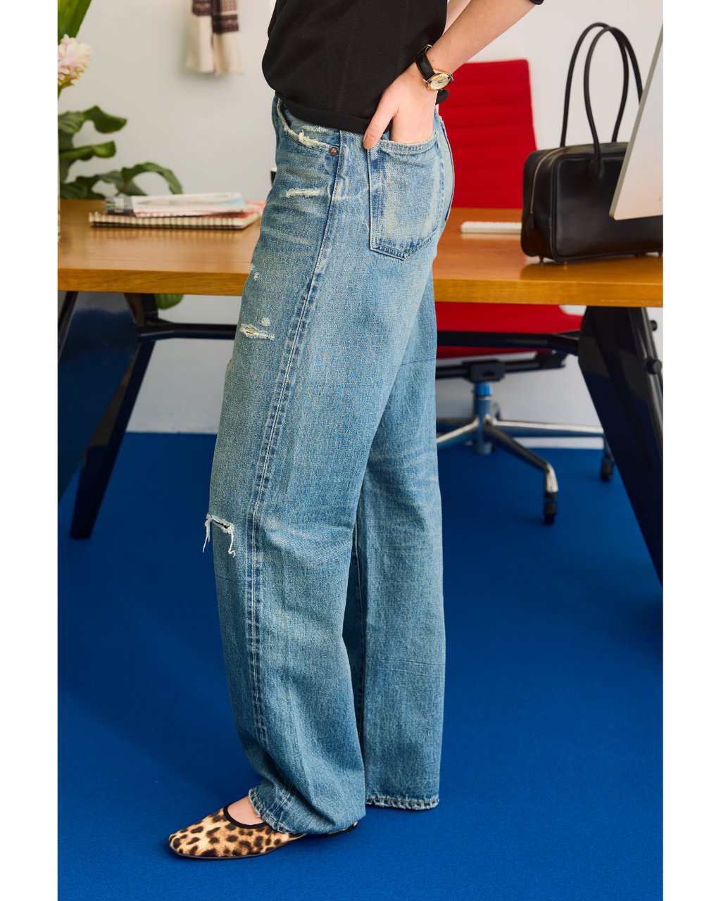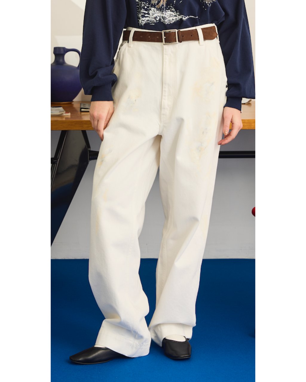 ハイウエストの安心感と、ワイドな裾が魅力のモデル。