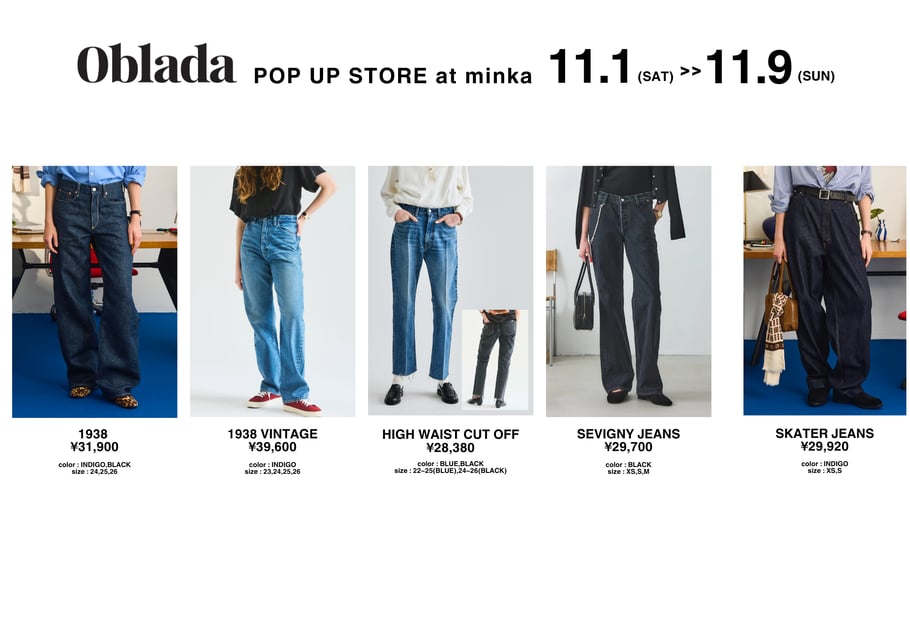 11月1日(土)から9日(日)までの期間、レディースブランド「oblada(オブラダ)」のポップアップストアを開催します!