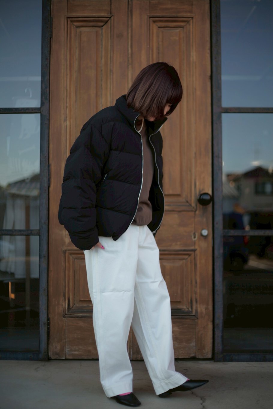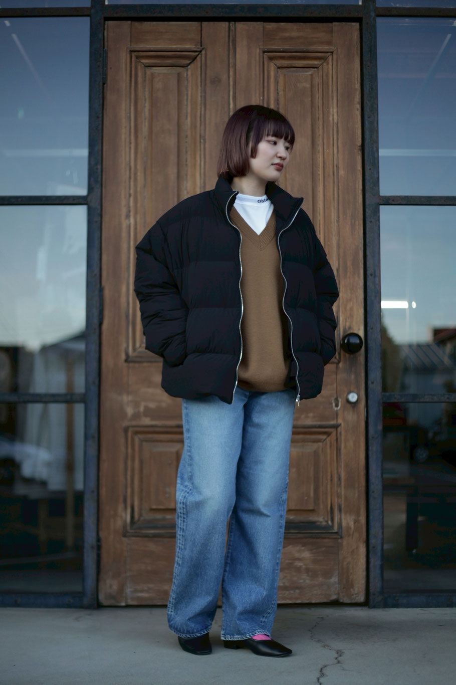 暗くなりがちな冬のダウンスタイルを、暖色で柔らかくまとめた組み合わせ。