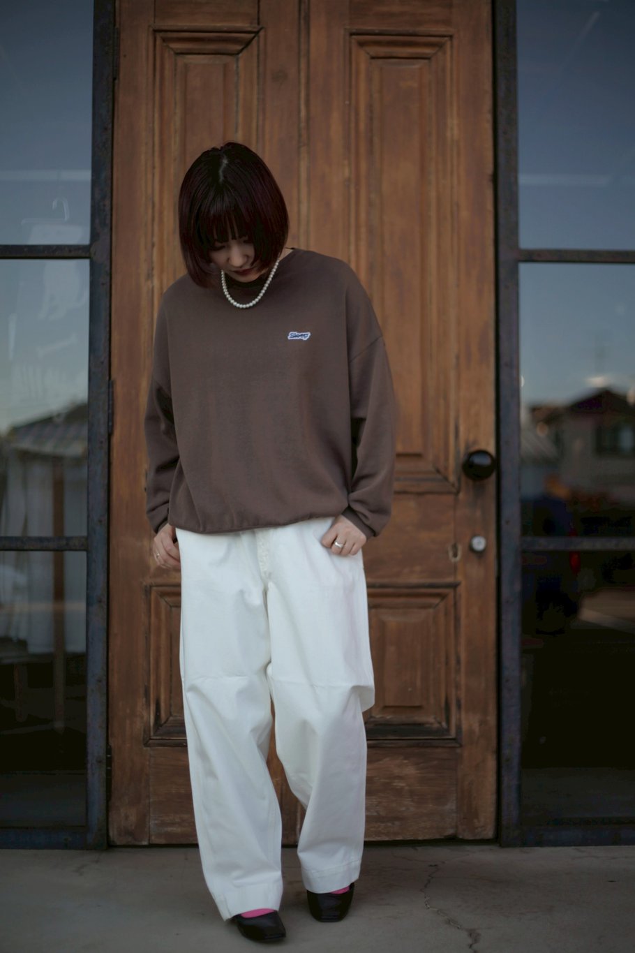 同じくブラウンを取り入れたコーディネートですが、新作のDON'T SLEEPコットンニットを合わせたスタイルをピックアップ。