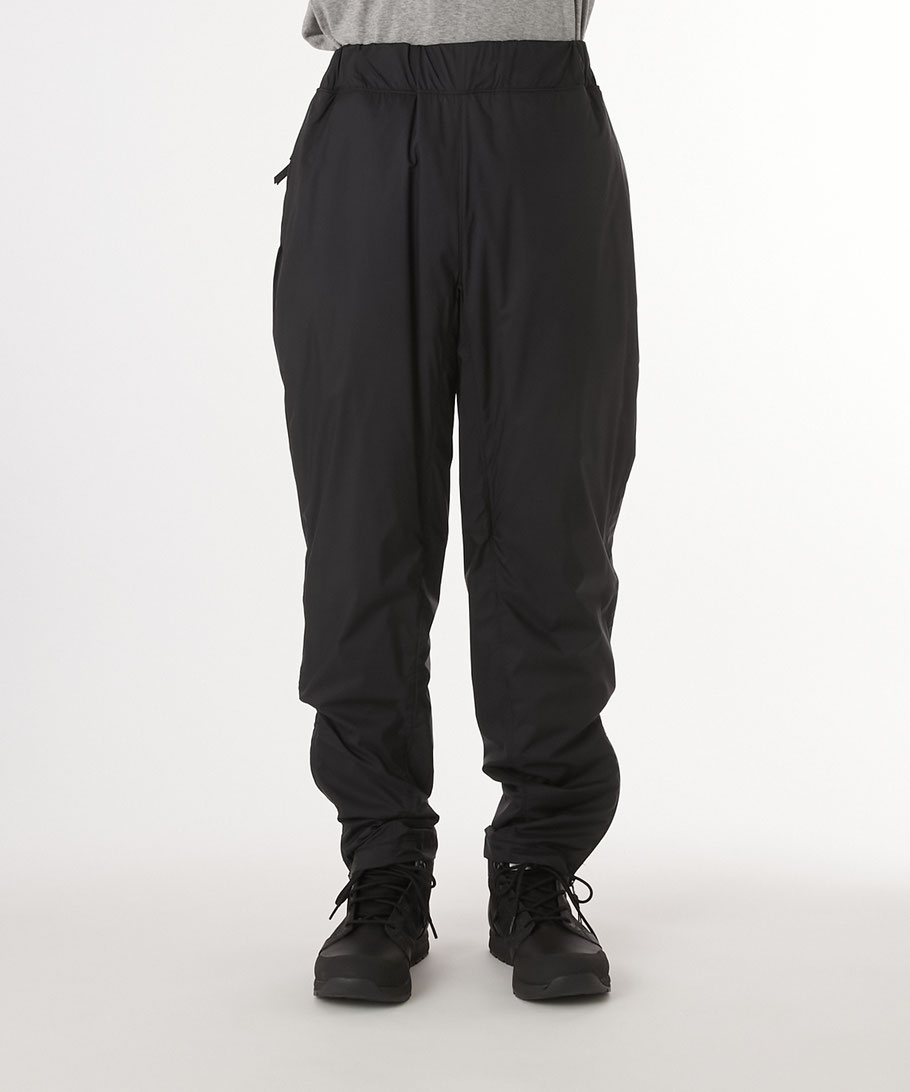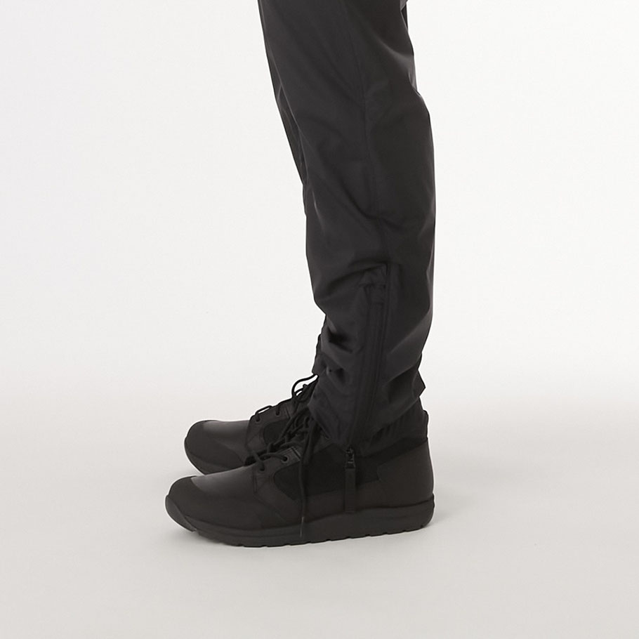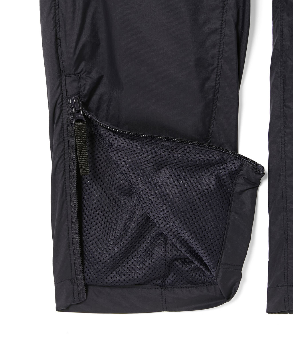股下のマチや裾ファスナー、ウエストのリブとドローコードなど、動作性を最大限に確保した仕様。
